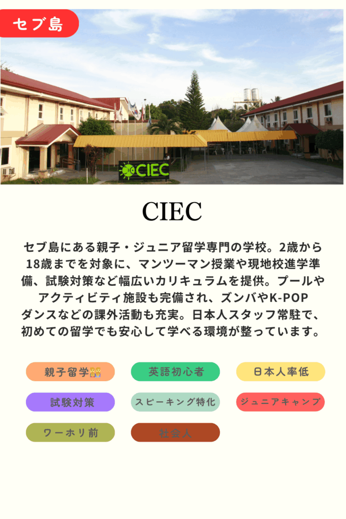 特徴: インターナショナルスクール併設で、親子・ジュニア留学に強い人気校。