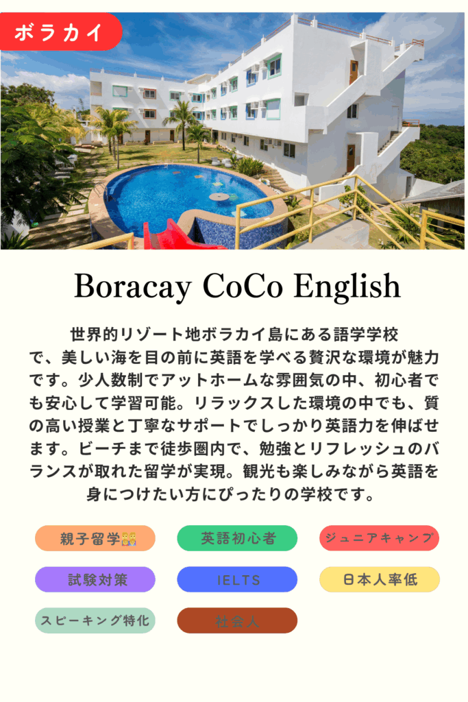 ・目の前がホワイトビーチ!リゾートで英語が学べる